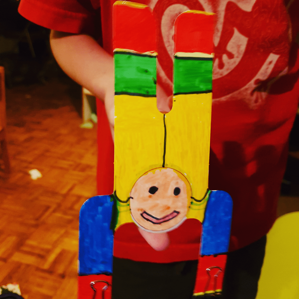 From there we made spinning pictures – the kind that you have an image on each side of a paper, place it on a stick and twirl it around so that the images kind of blend together in your brain. They even sent a few blank pages so you can make your own.